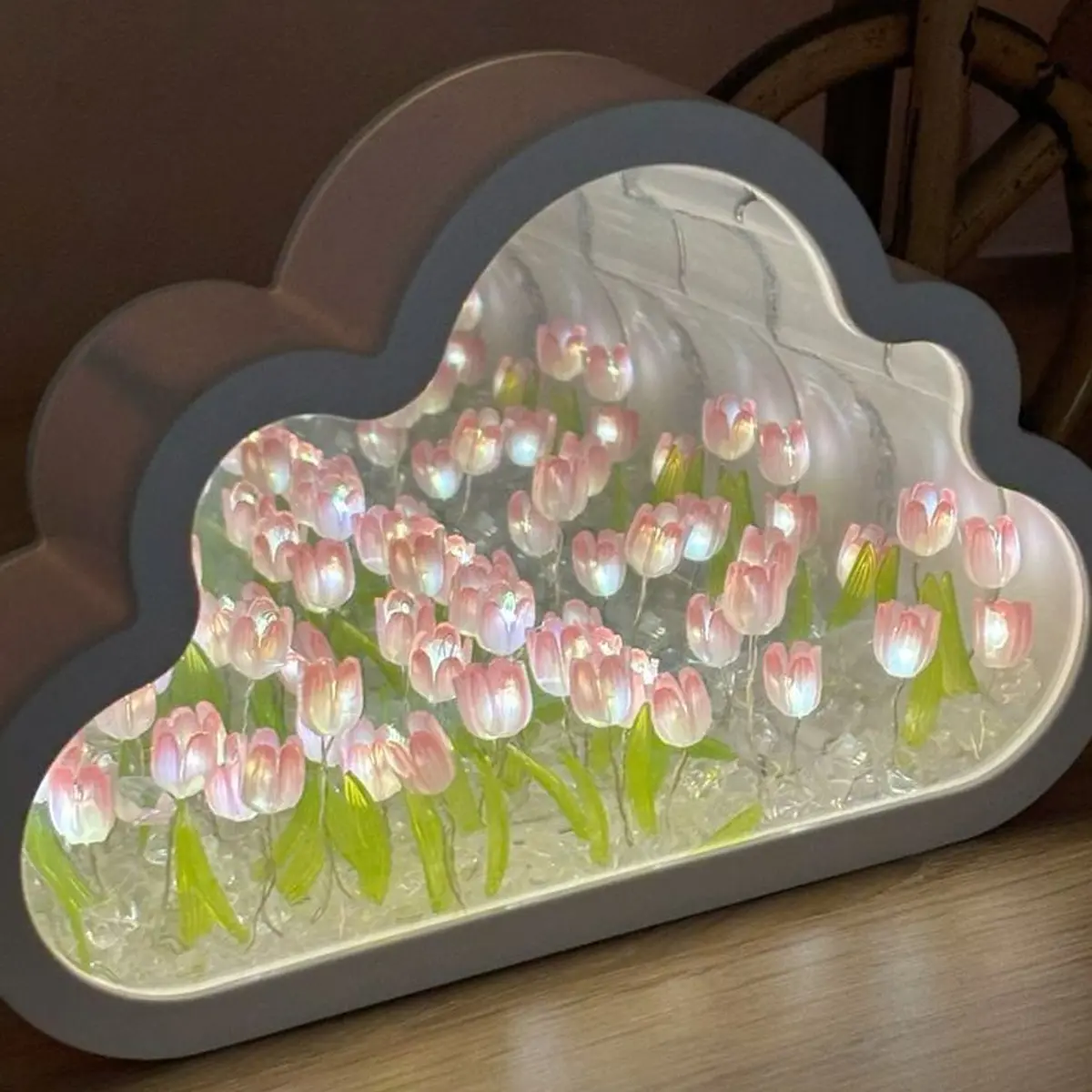 Incluye caja de regalo, decoracion, tarjeta personalizada, lámpara en nube de tulipanes infinitos, dulces de cortesía.