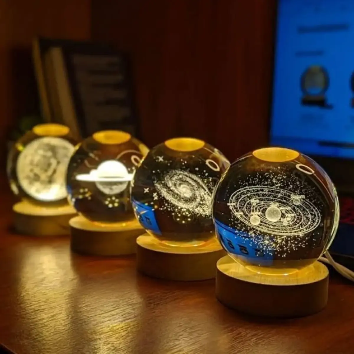 Incluye caja de regalo, decoracion, tarjeta personalizada, lámpara en cristal con base en madera y cable para conectar , dulces de cortesía.