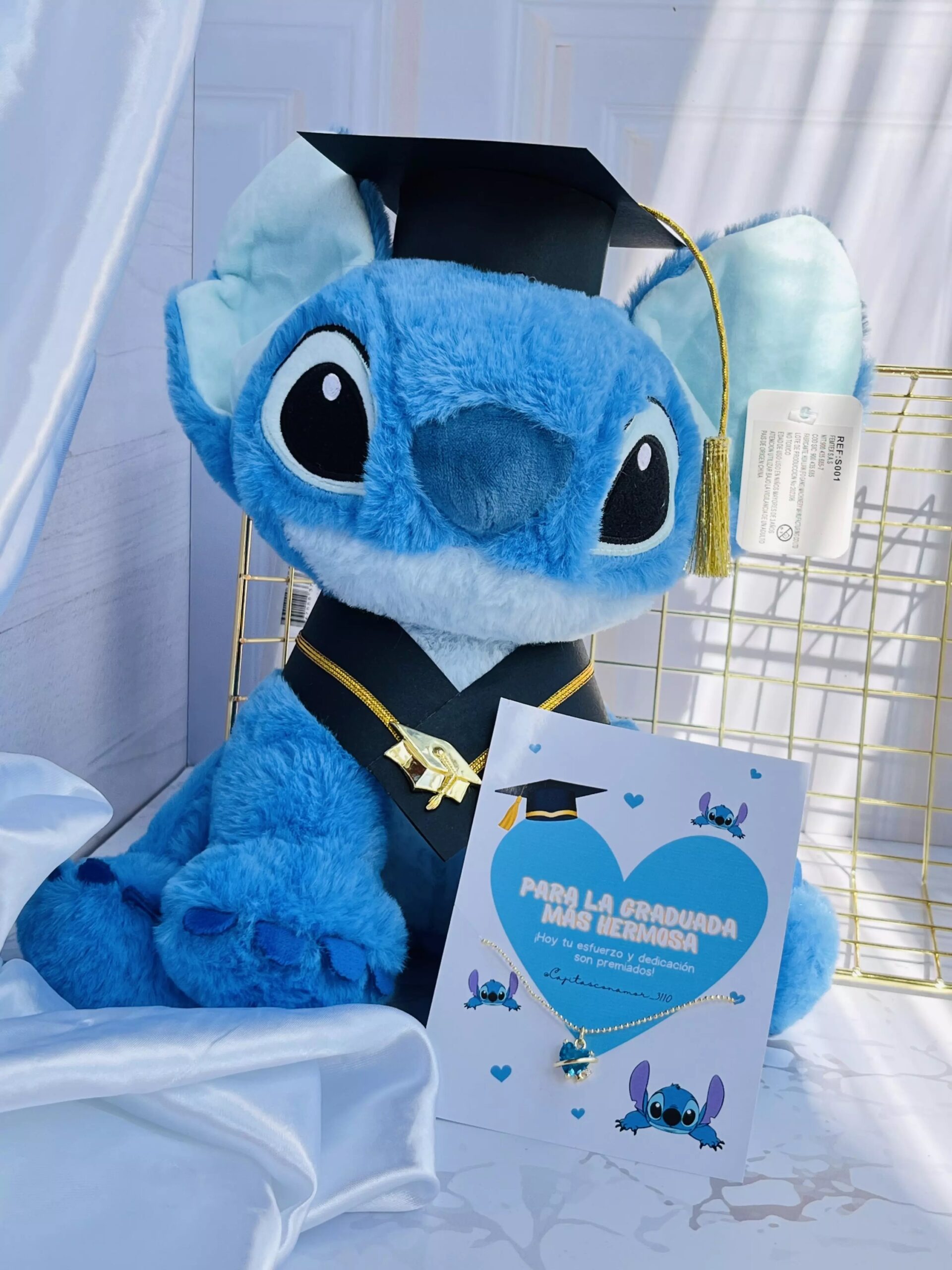 Incluye caja de regalo, decoración, tarjeta personalizada, peluche con birrete y toga, cadena en forma de corazón , dulces de cortesía.